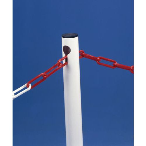 - Słupek na kwadratowej podstawie, który można łatwo złożyć bez użycia narzędzi, tworząc barierę prowadzącą za pomocą łańcucha.