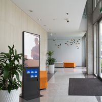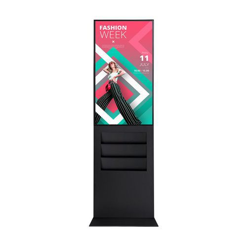 - Cyfrowy stojak Totem łączy w sobie elegancki wygląd i zintegrowany stojak na broszury.