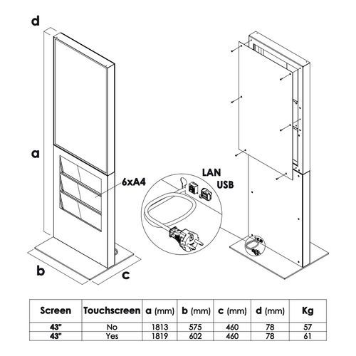 Cyfrowy totem Smart Line z kieszenią 6 x A4, czarny
