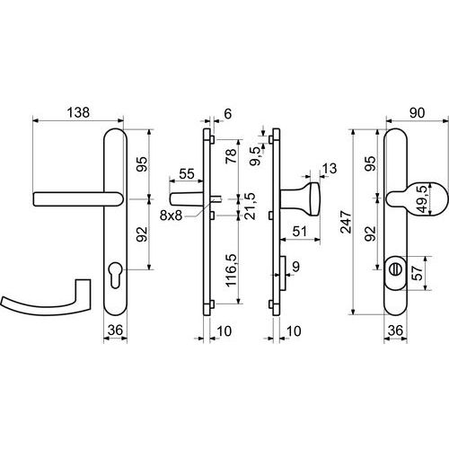 Solidne okucia zabezpieczające ze stali nierdzewnej z wkładaną osłoną do drzwi wejściowych