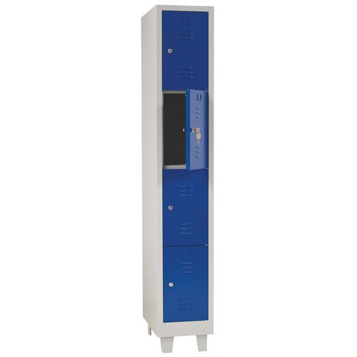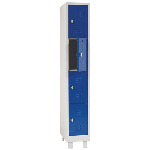 | Nazwa produktu | Spawana szafa szatniowa Manutan Expert Johny na nóżkach, 4 boksy, bez zamka, szary/niebieski |
