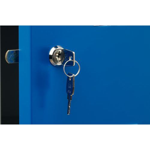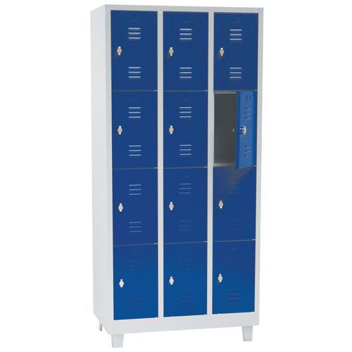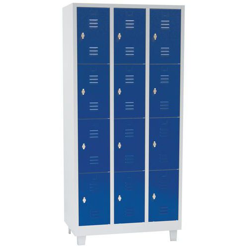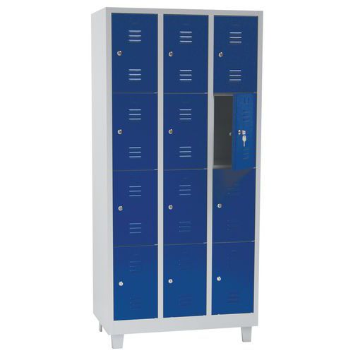 | Nazwa produktu | Spawana szafka szatniowa Manutan Expert James na nóżkach, 12 boksów, bez zamka, szary/niebieski |