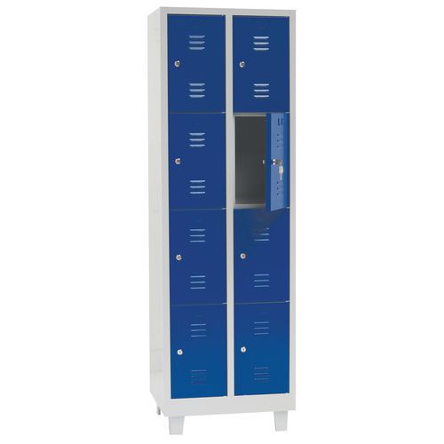 | Nazwa produktu | Spawana szafka szatniowa Manutan Expert Parker na nóżkach, 8 boksów, bez zamka, szary/niebieski |