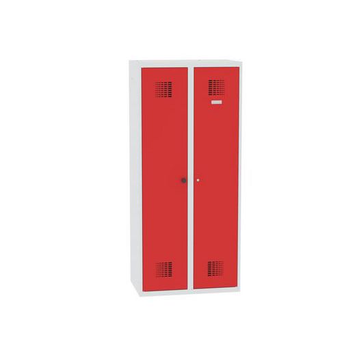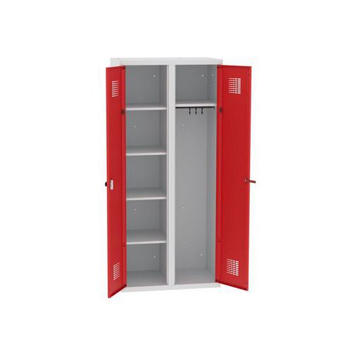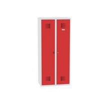 Spawana szafka sprzątacza Chloe, 2 przegrody, szerokość 800 mm, zamek cylindryczny, szara/czerwona Spawana szafka sprzątacza Chloe, 2 przegrody, szerokość 800 mm, zamek cylindryczny, szara/czerwona