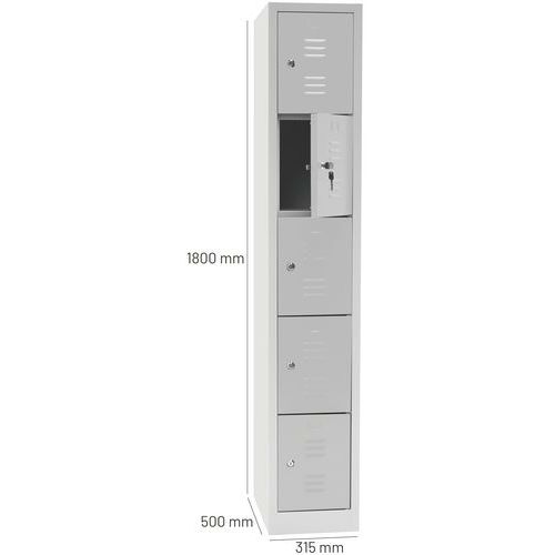 | Nazwa produktu | Spawane szafki szatniowe Manutan Expert Landry, 5 boksów, bez zamka, szary/szary |