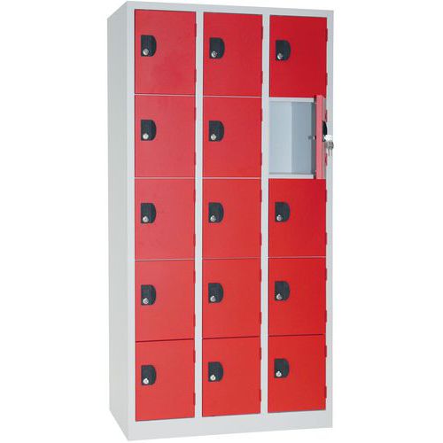 Spawana szafka szatniowa Pierre, 15 boksów, zamek cylindryczny, szary/czerwony