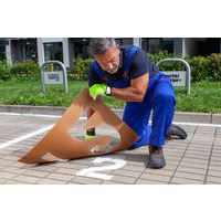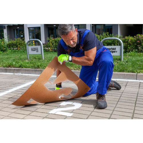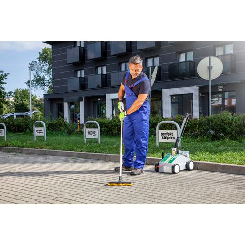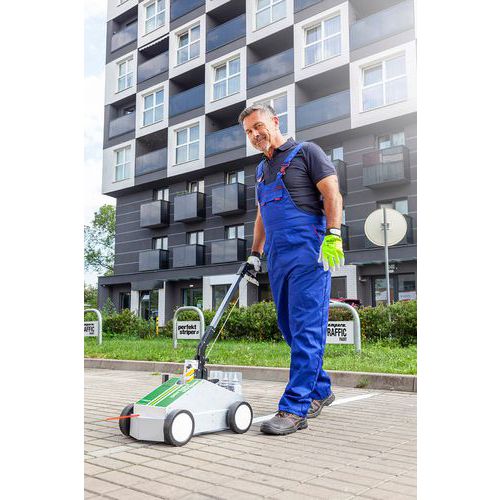 - Jeden pojemnik wystarcza na około 50 m linię o szerokości 7,5 cm, zużycie zależy od temperatury i właściwości powierzchni.