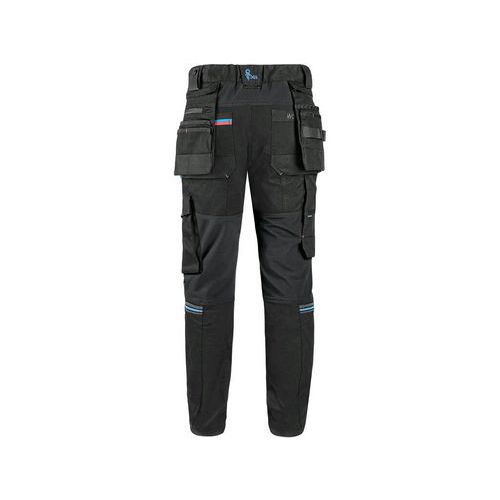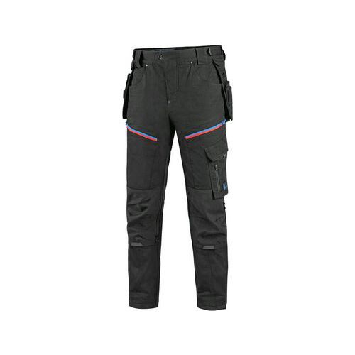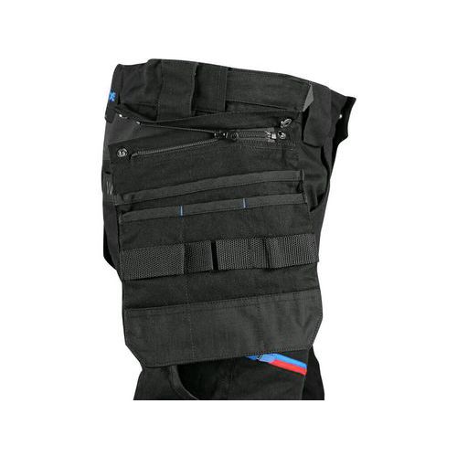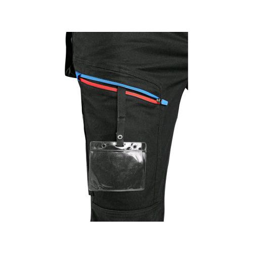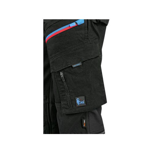 Spodnie CXS LEONIS, męskie, czarne z niebieskimi/czerwonymi dodatkami