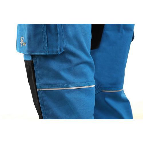 Damskie ogrodniczki robocze, tkanina stretch zapewniająca swobodny ruch, kieszeń na piersi z patką, szlufki na pasek, z przodu kieszonka na zamek, z boku kieszenie wielofunkcyjne, kolana wzmocnione poliesterem 600D, dwie tylne kieszenie - jedna z pat Velikost: 38-58 Reflexní doplňky: Ano