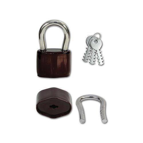 - Stalowa kłódka o prostej konstrukcji płytkowej.