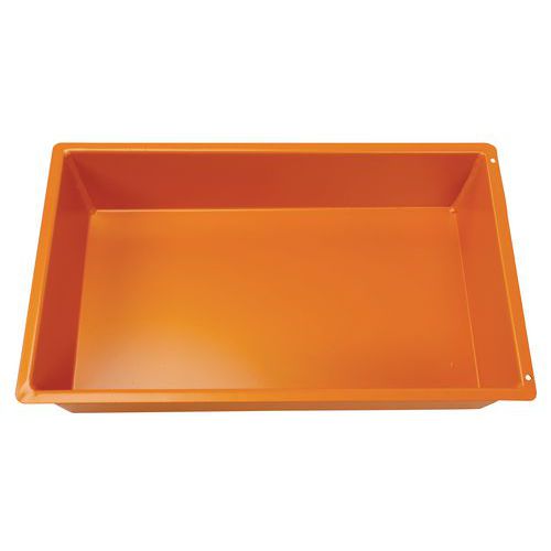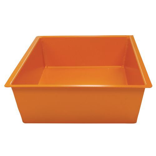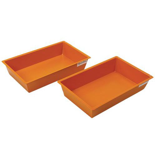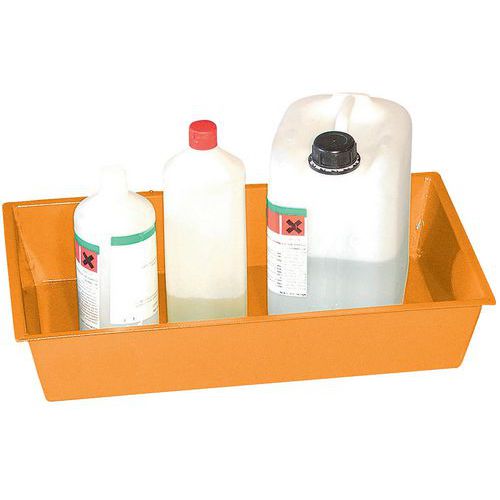 Wanny stalowe umożliwiające sztaplowanie, do umieszczenia pod zbiornikami lub kontenerami, gdzie dochodzi do niepożądanego wycieku cieczy. Odporne na węglowodory i rozpuszczalniki, wszystkie wanny są poddawane testowi na nieprzepuszczalność. Lakierowane w kolorze pomarańczowym RAL 2000.