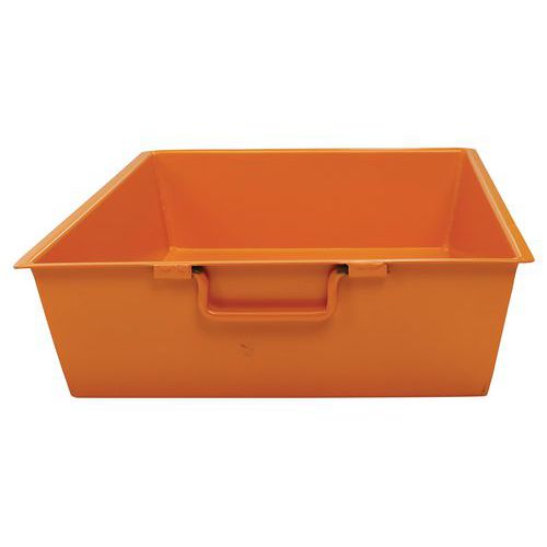 Wanny stalowe umożliwiające sztaplowanie, do umieszczenia pod zbiornikami lub kontenerami, gdzie dochodzi do niepożądanego wycieku cieczy. Odporne na węglowodory i rozpuszczalniki, wszystkie wanny są poddawane testowi na nieprzepuszczalność. Lakierowane w kolorze pomarańczowym RAL 2000.