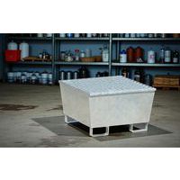 Stalowe wanny wychwytowe do przechowywania 1 – 4 beczek o pojemności 200 l. Nadają się do przechowywania substancji zagrażających wodzie, odporne na rozpuszczalniki i węglowodory. Część nośną tworzy wyciągany ocynkowany ruszt. Łatwe manewrowanie za pomocą wózka widłowego lub wózka paletowego, manipulacja ładunkiem jest możliwa tylko w odniesieniu do wanien na 1 beczkę. Wanny wychwytowe są z dwóch stron spawane, co zapewnia wodoszczelność. Dostępne w wersji ocynkowanej lub lakierowanej w kolorze pomarańczowym RAL 2000.