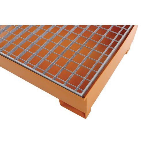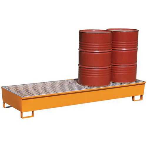Stalowe wanny wychwytowe do przechowywania 1 – 4 beczek o pojemności 200 l. Nadają się do przechowywania substancji zagrażających wodzie, odporne na rozpuszczalniki i węglowodory. Część nośną tworzy wyciągany ocynkowany ruszt. Łatwe manewrowanie za pomocą wózka widłowego lub wózka paletowego, manipulacja ładunkiem jest możliwa tylko w odniesieniu do wanien na 1 beczkę. Wanny wychwytowe są z dwóch stron spawane, co zapewnia wodoszczelność. Dostępne w wersji ocynkowanej lub lakierowanej w kolorze pomarańczowym RAL 2000. Maks. obciążenie statyczne (kg) : 1000 kg Gwarancja producenta dla klienta : 10 lat