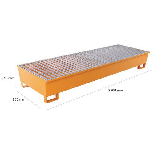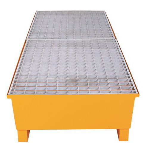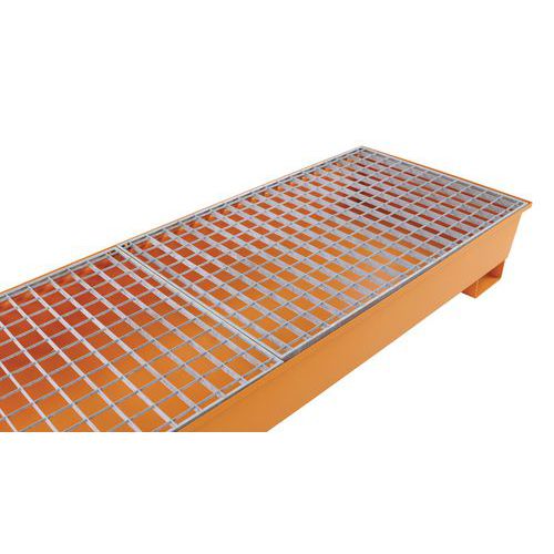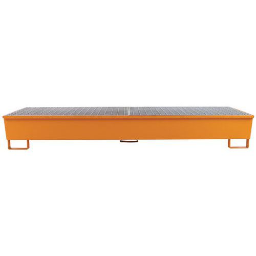 Stalowe wanny wychwytowe do przechowywania 1 – 4 beczek o pojemności 200 l. Nadają się do przechowywania substancji zagrażających wodzie, odporne na rozpuszczalniki i węglowodory. Część nośną tworzy wyciągany ocynkowany ruszt. Łatwe manewrowanie za pomocą wózka widłowego lub wózka paletowego, manipulacja ładunkiem jest możliwa tylko w odniesieniu do wanien na 1 beczkę. Wanny wychwytowe są z dwóch stron spawane, co zapewnia wodoszczelność. Dostępne w wersji ocynkowanej lub lakierowanej w kolorze pomarańczowym RAL 2000.