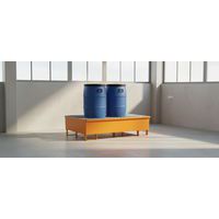 Stalowe wanny wychwytowe do przechowywania 1 – 4 beczek o pojemności 200 l. Nadają się do przechowywania substancji zagrażających wodzie, odporne na rozpuszczalniki i węglowodory. Część nośną tworzy wyciągany ocynkowany ruszt. Łatwe manewrowanie za pomocą wózka widłowego lub wózka paletowego, manipulacja ładunkiem jest możliwa tylko w odniesieniu do wanien na 1 beczkę. Wanny wychwytowe są z dwóch stron spawane, co zapewnia wodoszczelność. Dostępne w wersji ocynkowanej lub lakierowanej w kolorze pomarańczowym RAL 2000.