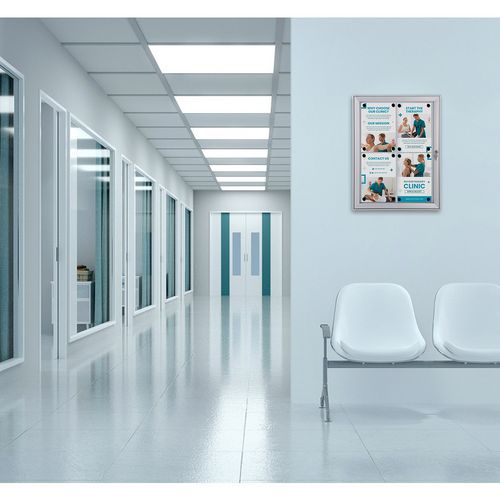 - Zamykana gablota z magnetyczną powierzchnią nada Twojej prezentacji elegancki i nowoczesny wygląd.