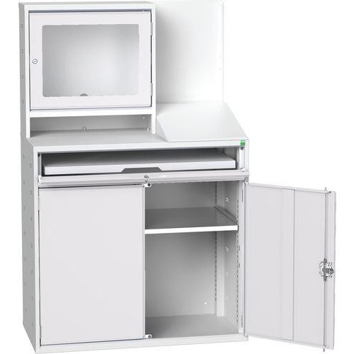 - Szafka komputerowa odpowiednia do bezpiecznego przechowywania i użytkowania sprzętu PC w miejscu pracy.
