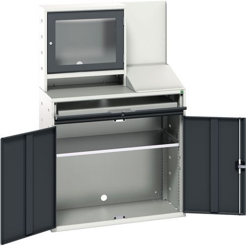 - Szafka komputerowa odpowiednia do bezpiecznego przechowywania i użytkowania sprzętu PC w miejscu pracy.