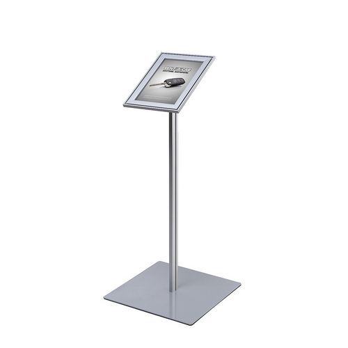 Stojaki informacyjne z ramą na plakaty. Regulacja pozycji ramy. Rama zatrzaskowa z ostrymi rogami i profilem 37 mm. Wyprodukowany w UE