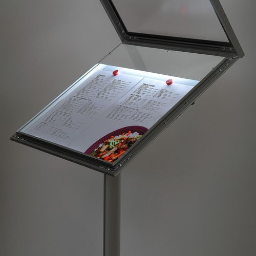 Stojaki informacyjne z gablotą Menuboard, oświetlenie LED