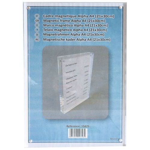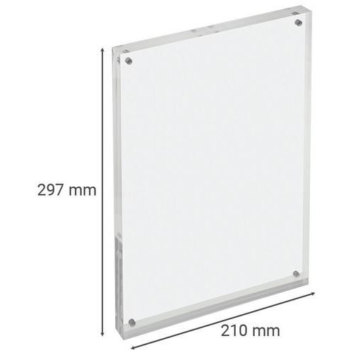 Przezroczyste plastikowe stojaki do umieszczania ulotek, informacji, menu obiadowego, można je wykorzystać także jako ramkę na fotografię. Dokumenty umieszcza się pomiędzy plastikowymi tablicami, zamknięcie za pomocą 4 punktów magnetycznych w każdym rogu. Możliwość zastosowania poziomego lub pionowego układu prezentacji.
