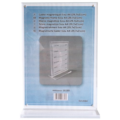 Akrylowa ramka T na ulotki reklamowe, informacje, menu obiadowe, fotografie itp. Układ pionowy. Łatwy sposób umieszczania dokumentu pomiędzy plastikowymi tablicami, stabilne mocowanie za pomocą punktów magnetycznych. Gwarancja producenta dla klienta : 10 lat