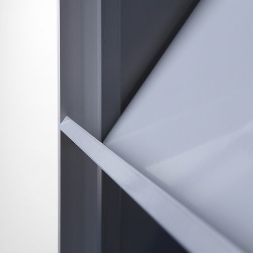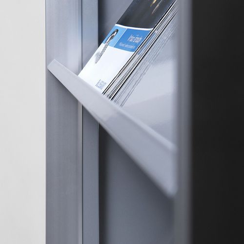 - Ukośne półki w dolnej części są wygięte i można na nich umieścić ulotki reklamowe lub katalogi.