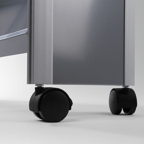 - Stojaki zawierają cztery kółka z hamulcem ułatwiającym przemieszczanie.