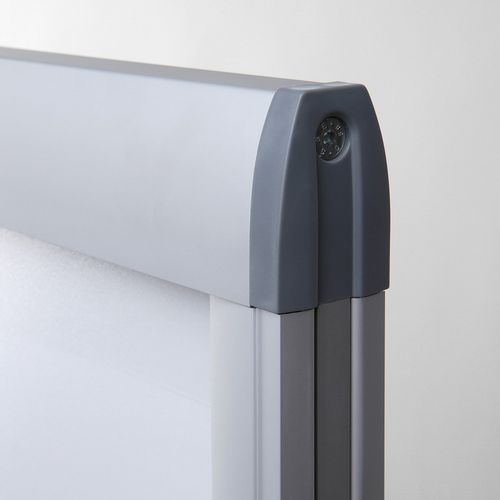 - Tablice mają profile zatrzaskowe na pionowych bokach oraz stabilną folię antyrefleksyjną UV, która zapewnia większą odporność plakatów.