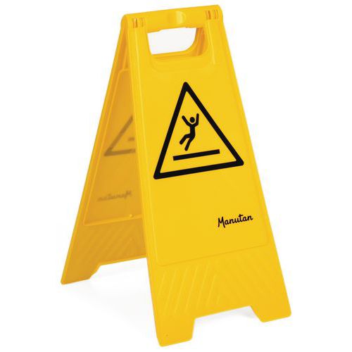 - Składana tablica ostrzegawcza z obustronnym napisem „Uwaga! Śliska podłoga” w języku polskim i angielskim.
