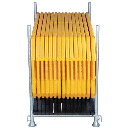 - Zestaw składający się z barierek mobilnych oraz stojaka transportowego do czasowego blokowania obszaru.