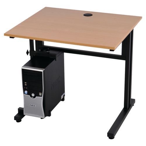 - Wytrzymały stół komputerowy z laminowanej płyty wiórowej o grubości 19 mm i uchwytem na komputer.