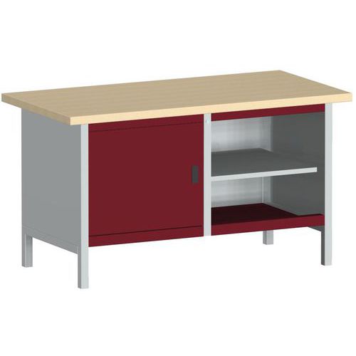 Stół warsztatowy Bott Cubio Storage, 84 x 150 x 75 cm, 1 szafka, część otwarta z półką, linoleum/sklejka
