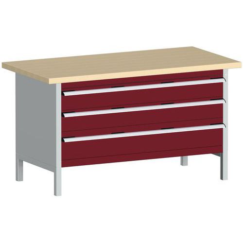 Stół warsztatowy Bott Cubio Storage, 84 x 150 x 75 cm, 3 szuflady, multipleks, szaro-czerwony Stół warsztatowy Bott Cubio Storage, 84 x 150 x 75 cm, 3 szuflady, multipleks, szaro-czerwony