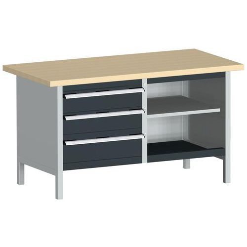 Stół warsztatowy Bott Cubio Storage, 84 x 150 x 75 cm, 3 szuflady, otwarta przestrzeń z półką, multipleks Stół warsztatowy Bott Cubio Storage, 84 x 150 x 75 cm, 3 szuflady, otwarta przestrzeń z półką, multipleks