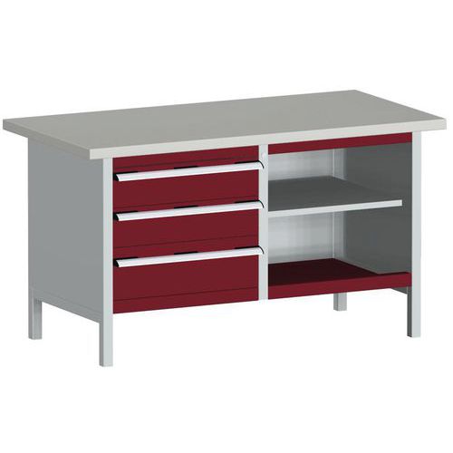 Stół warsztatowy Bott Cubio Storage, 84 x 150 x 75 cm, 3 szuflady, otwarta przestrzeń z półką, linoleum Stół warsztatowy Bott Cubio Storage, 84 x 150 x 75 cm, 3 szuflady, otwarta przestrzeń z półką, linoleum