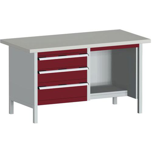 Stół warsztatowy Bott Cubio Storage, 84 x 150 x 75 cm, 3 szuflady, półki, linoleum, szaro-czerwony Stół warsztatowy Bott Cubio Storage, 84 x 150 x 75 cm, 3 szuflady, półki, linoleum, szaro-czerwony