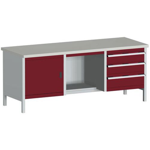 Stół warsztatowy Bott Cubio Storage, 84 x 200 x 75 cm, 1 szafka, 3 szuflady, półki, linoleum, szaro-czerwony Stół warsztatowy Bott Cubio Storage, 84 x 200 x 75 cm, 1 szafka, 3 szuflady, półki, linoleum, szaro-czerwony