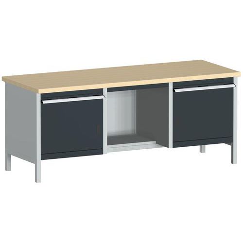 Stół warsztatowy Bott Cubio Storage, 84 x 200 x 75 cm, 2 szafki, 2 szuflady, półki, multipleks, szaro-antracyt Stół warsztatowy Bott Cubio Storage, 84 x 200 x 75 cm, 2 szafki, 2 szuflady, półki, multipleks, szaro-antracyt