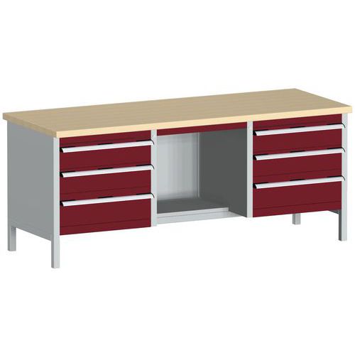 Stół warsztatowy Bott Cubio Storage, 84 x 200 x 75 cm, 6 szuflad, półki, multipleks, szaro-czerwony Stół warsztatowy Bott Cubio Storage, 84 x 200 x 75 cm, 6 szuflad, półki, multipleks, szaro-czerwony