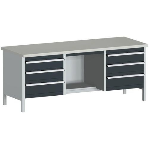 Stół warsztatowy Bott Cubio Storage, 84 x 200 x 75 cm, 6 szuflad, półki, linoleum, szaro-antracyt Stół warsztatowy Bott Cubio Storage, 84 x 200 x 75 cm, 6 szuflad, półki, linoleum, szaro-antracyt