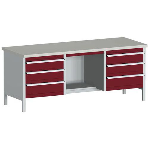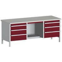 Stół warsztatowy Bott Cubio Storage, 84 x 200 x 75 cm, 6 szuflad, półki, linoleum, szaro-czerwony Stół warsztatowy Bott Cubio Storage, 84 x 200 x 75 cm, 6 szuflad, półki, linoleum, szaro-czerwony