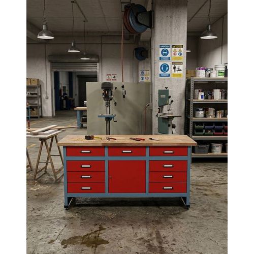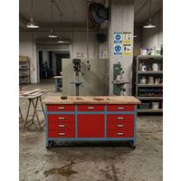Stół warsztatowy Monti, 84 x 170 x 60 cm, 9 szuflad, 1 szafka