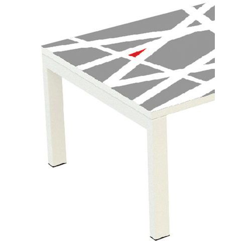 Prostokątny stolik konferencyjny w kolorowym designie, przeznaczony do biur, holi itp. Wysoką stabilność zapewnia metalowa lakierowana konstrukcja z profili 50 x 30 mm. Blat stołu posiada obrzeża PCW o gr. 2 mm. Nogi wyposażone w plastikowe stopki zapobiegające rysowaniu podłogi.