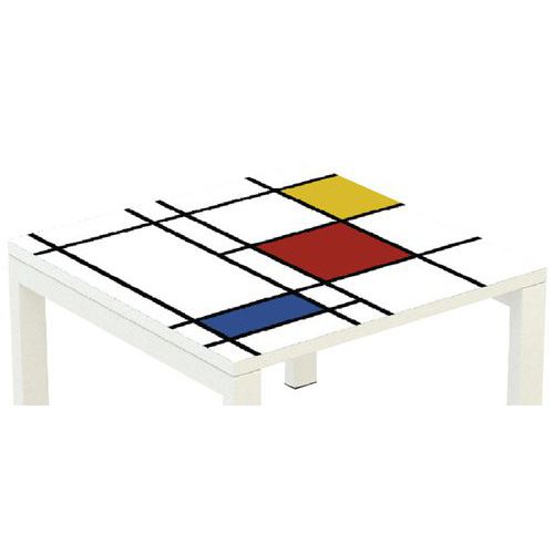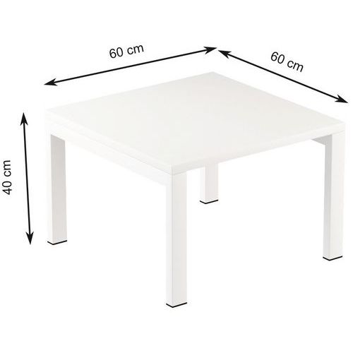 Kwadratowy stolik konferencyjny w kolorowym designie, przeznaczony do biur, holi itp. Wysoką stabilność zapewnia metalowa lakierowana konstrukcja z profili 50 x 30 mm. Blat stołu posiada obrzeża PCW o gr. 2 mm. Nogi wyposażone w plastikowe stopki zapobiegające rysowaniu podłogi.