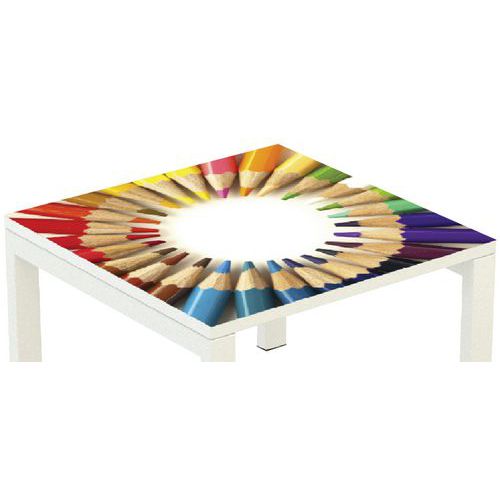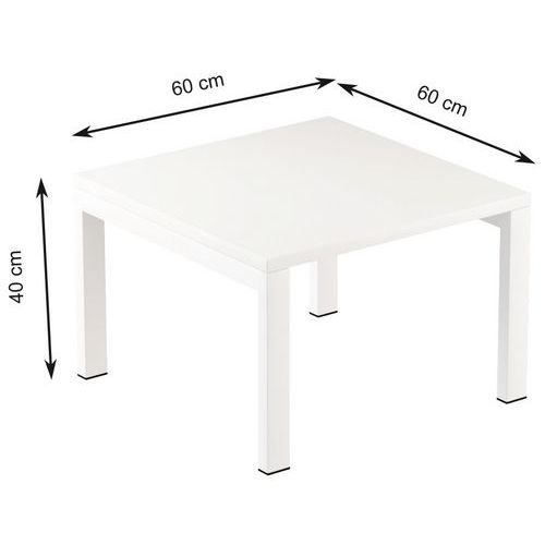 Kwadratowy stolik konferencyjny w kolorowym designie, przeznaczony do biur, holi itp. Wysoką stabilność zapewnia metalowa lakierowana konstrukcja z profili 50 x 30 mm. Blat stołu posiada obrzeża PCW o gr. 2 mm. Nogi wyposażone w plastikowe stopki zapobiegające rysowaniu podłogi.