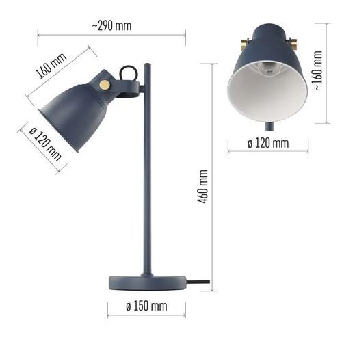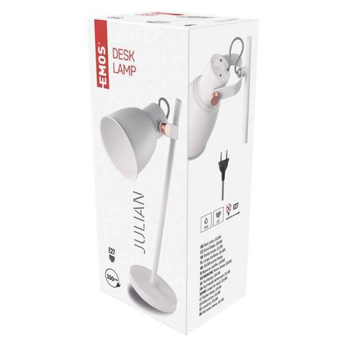 - Metalowe lampy stołowe JULIAN są dostępne w trzech kolorach – białym, niebieskim, czarnym.