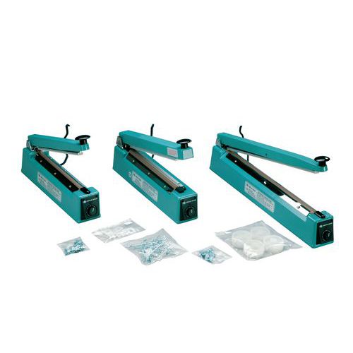 - Zgrzewarki impulsowe odpowiednie do zamykania woreczków foliowych. Zgrzewanie wykonywane drutem oporowym Kanthal. Regulacja czasu zgrzewania w zależności od typu i grubości folii. Do zgrzewarki można zamówić części zamienne (druty do zgrzewania, taśmy teflonowe, gumy silikonowe).