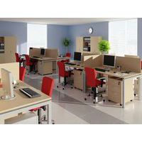 Lekkie i nowoczesne stoły biurowe przeznaczone do przestrzennego, mobilnego biura. Blat prostokątny z płyty wiórowej laminowanej o grubości 25mm, wsparty na stelażu SNC. Nogi są łączone dwoma belkami wciskanymi i zakończone stopkami z możliwością poziomowania w zakresie 15mm.